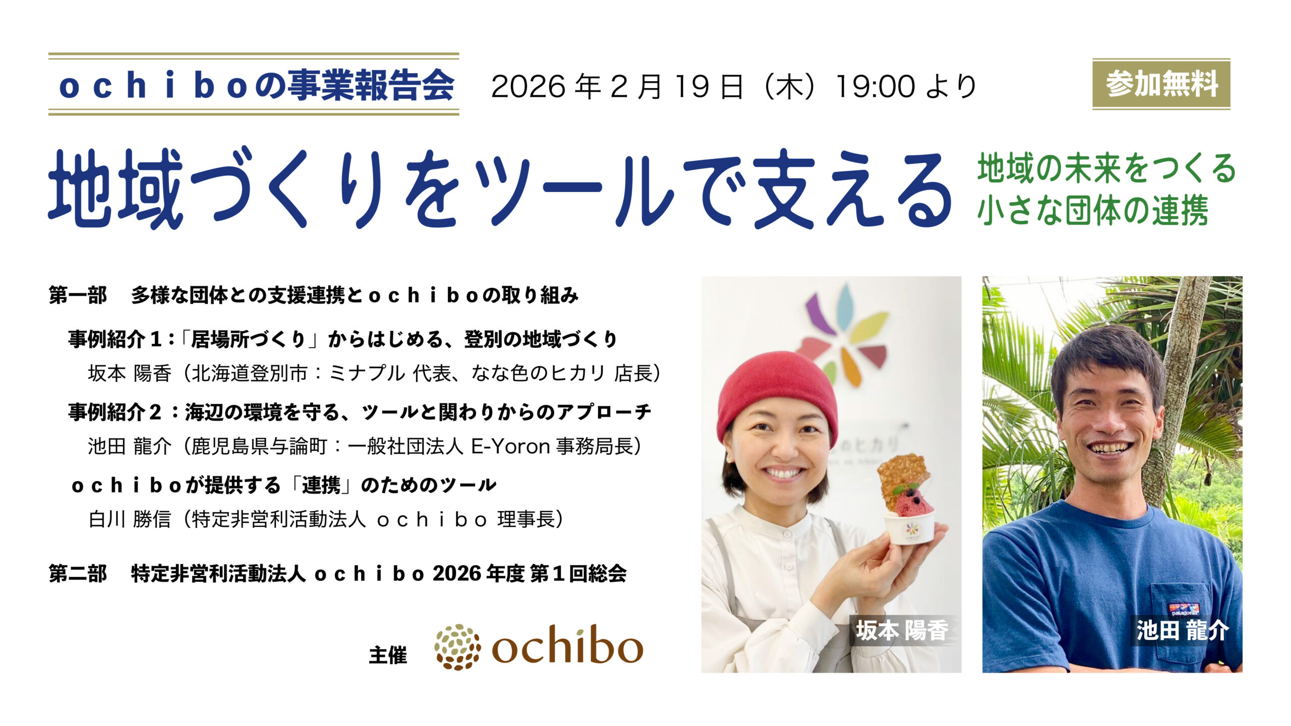 事業報告会、特定非営利活動法人ochibo 2026年度 第1回 総会